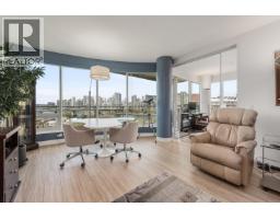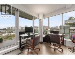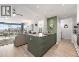 Elevated living in the heart of Olympic Village. This 10th-floor northwest corner residence captures a 270° west-facing view of Cambie Bridge, Yaletown, BC Place and Science World - light pours in from morning to dusk, and sunsets become a nightly event. Thoughtfully reimagined throughout: floor-to-ceiling cabinetry, newer granite counters, custom pantry, and pull-out drawers in the island. Ultra-resistant SPC luxury vinyl plank flows through the main living areas and second bedroom; plush new carpet anchors the primary suite. Two bedrooms, two updated bathrooms with newer functional sinks. Blackout curtains in the primary, blackout blinds in the second. A ceiling fan tempers the main space, while exterior balcony sunshades extend comfort outdoors. Oversized 12'×6' storage locker, plus two side-by-side parking stalls with 110V outlets - steps from the elevators. Walk to the seawall, breweries, Canada Line and Expo Line. A rare west-facing corner in one of Vancouver's most walkable neighbourhoods. (id:58554)