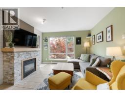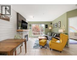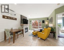 Exciting opportunity at Deerfield by the Sea! This stylishly updated 2 bdrm + glass-walled den, 2 bath home offers 961 sq/ft of bright, air-conditioned living. Enjoy renovated, open kitchen with bar seating, updated baths, gas fireplace, and large windows framing a peaceful, south-facing treed view. Bedrooms are smartly separated for privacy, and the den is perfect as an office, nursery, or guest space. One floor above ground-safe and elevator-free access! Covered balcony ideal for year-round BBQs. Walk to the beach and rec/gym facilities. In-suite laundry, 2 parking, storage locker. Rentals & pets welcome. Leasehold prepaid to 2095. (id:58554)
