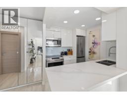 Bright, south-facing 1-bedroom, 1-bathroom home of refined living space with views of the city skyline and Lions Gate Bridge. Tastefully renovated from top to bottom, the open-concept kitchen features high-end finishes and a stainless steel appliance package, flowing seamlessly into the living area. A well-sized balcony overlooks mature trees, creating a peaceful outdoor retreat. Located in the Whytcliff building at Woodcroft, widely regarded as one of the best in the complex, with major infrastructure upgrades completed including hot and cold water plumbing replacement, elevator rebuilding, and roof replacement. (id:58554)