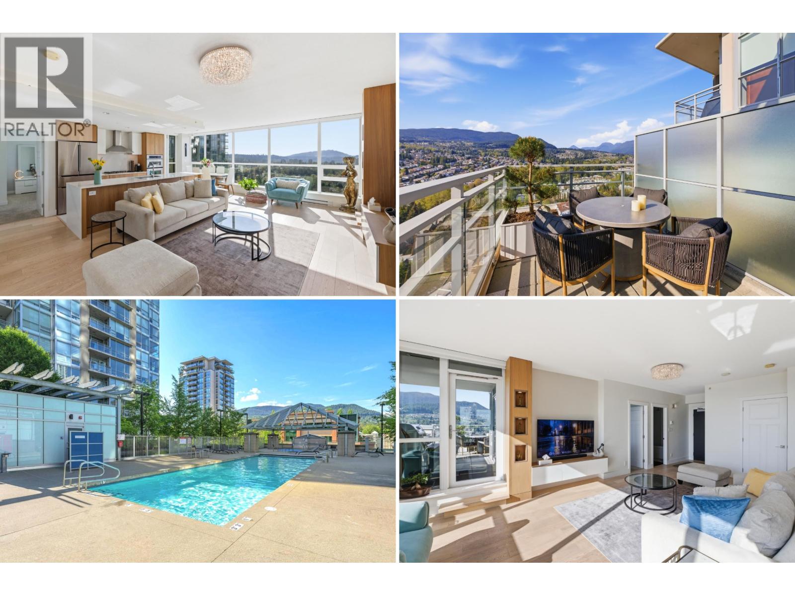 Penthouse Collection corner unit at Grand Central 2 in the heart of Coquitlam Centre! Featuring 2 large balconies with seamless indoor-outdoor living. This rare layout occupies one full side of the building, offering privacy and expansive exposure. Floor-to-ceiling windows showcase unobstructed panoramic views of Westwood Plateau, Burrard Inlet & the city skyline. Spacious living and dining areas connect to a modern, renovated kitchen with quality finishes and thoughtful upgrades throughout. Amenities include outdoor pool, jacuzzi, gym, yoga room, lounge & garden. Walk to Coquitlam Centre, SkyTrain, West Coast Express, Lafarge Lake, parks, shops, cafes & more. (id:58554)