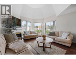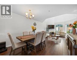 Welcome to your bright top-floor 2 bedroom, 2 bathroom condo with mountain views and soaring vaulted ceilings that create an airy, uplifting feel! Beautiful engineered hardwood floors flow throughout, paired with a modern kitchen featuring sleek stainless steel appliances. The open floor plan connects living, dining, and kitchen areas around a cozy gas fireplace, with a spacious balcony accessible from both bedrooms and the living space-perfect for morning coffee or sunset views. The generous master suite includes a luxurious 4-piece ensuite, while the main bath offers a walk-in shower. In-suite laundry adds everyday convenience. You'll also enjoy 1 parking stall and a storage locker. In a well-maintained rainscreened building, the location is unbeatable: walk to SkyTrain, Aquatic Centre, Coquitlam Centre, shopping, restaurants, and schools. Pet-friendly: up to 2 pets allowed, including 1 dog up to 20 lbs. This rare top-floor gem blends style, comfort, and serene views in one of Coquitlam's best spots. (id:58554)