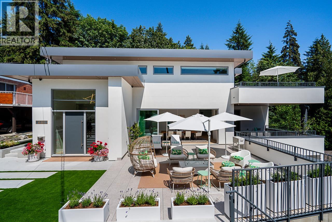 This 18,000 sq.ft. concrete masterpiece spans the entire corner block of prestigious Willoughby Road in West Vancouver. Designed by Paul Grant and built by Gordon Wilson, it sits on a flat, over-one-acre lot with a heated driveway and limestone exterior. Inside, marble medallions in the entrance and hallway, faux-finished walls, and hand-painted ceilings-including breathtaking ceiling art in the grand entrance and primary suite-create an ambiance of elevated luxury. A 45-ft indoor pool with folding glass doors is the centrepiece of spa-inspired amenities: hot tub, sauna, steam room, and cold plunge. Two service staircases lead to staff quarters and mechanical zones. A wok kitchen, expansive BBQ area, elevator, radiant heat, AC, 100% load generator, two guest suites, and a 6-car garage. (id:58554)